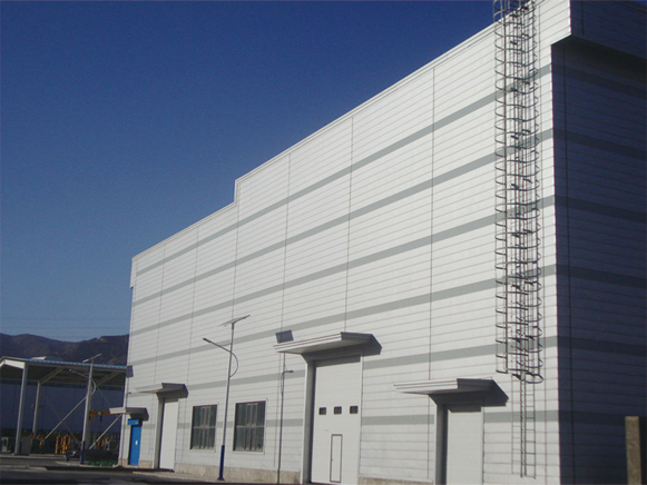 該項目建筑面積23萬㎡,由29個單體廠房構(gòu)成,跨度24~27m,100t吊車梁,主鋼結(jié)構(gòu)2.2萬噸,具有規(guī)模大、單體多、運輸距離遠(yuǎn)、交叉作業(yè)多、現(xiàn)場環(huán)境惡劣等特點。太原項目部協(xié)同生產(chǎn)技術(shù)人員,對470屋面板生產(chǎn)的操作平臺等安裝設(shè)備及工裝進行了技術(shù)改造,極大提高生產(chǎn)效率,同時降低了設(shè)備移動的運輸成本。通過公司各部門的密切合作,該項目順利保質(zhì)保量按期完工。